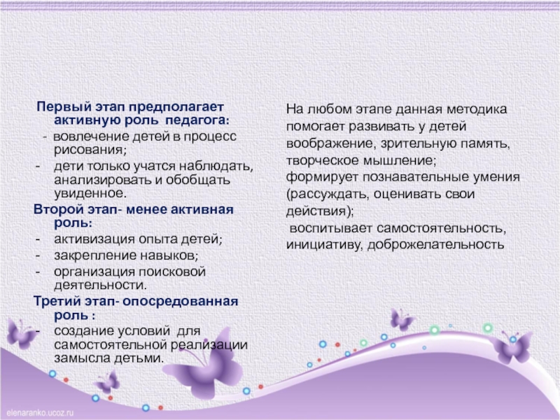 На любом этапе данная методика помогает развивать у детей воображение, зрительную память, творческое мышление;
