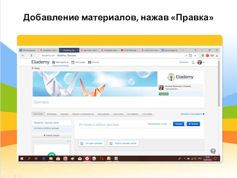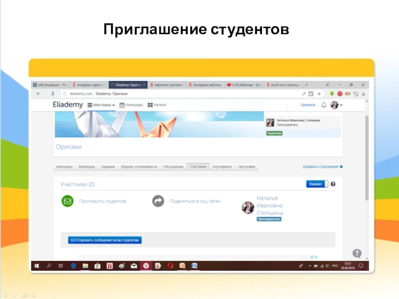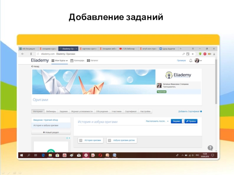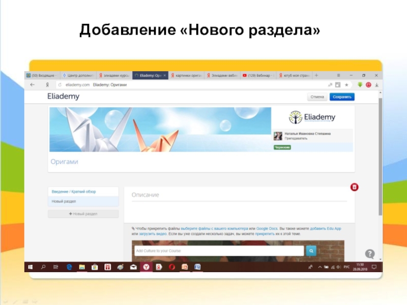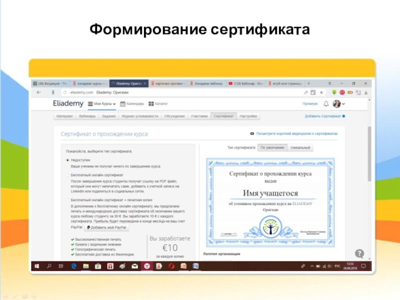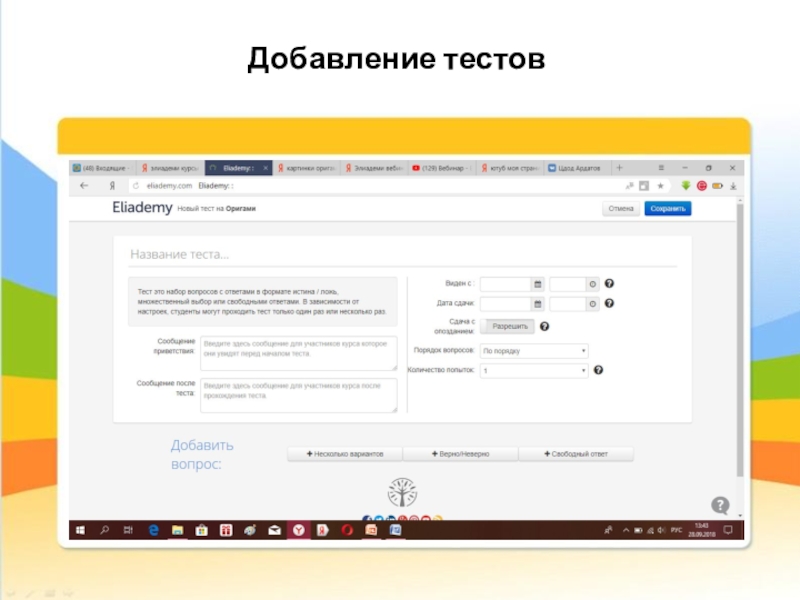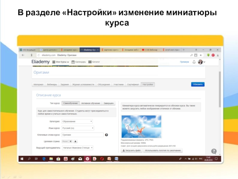 Организация дистанционного обучения на платформе Eliademi