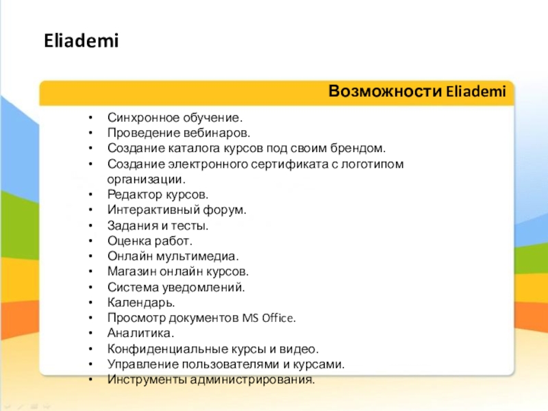 Возможности Eliademi