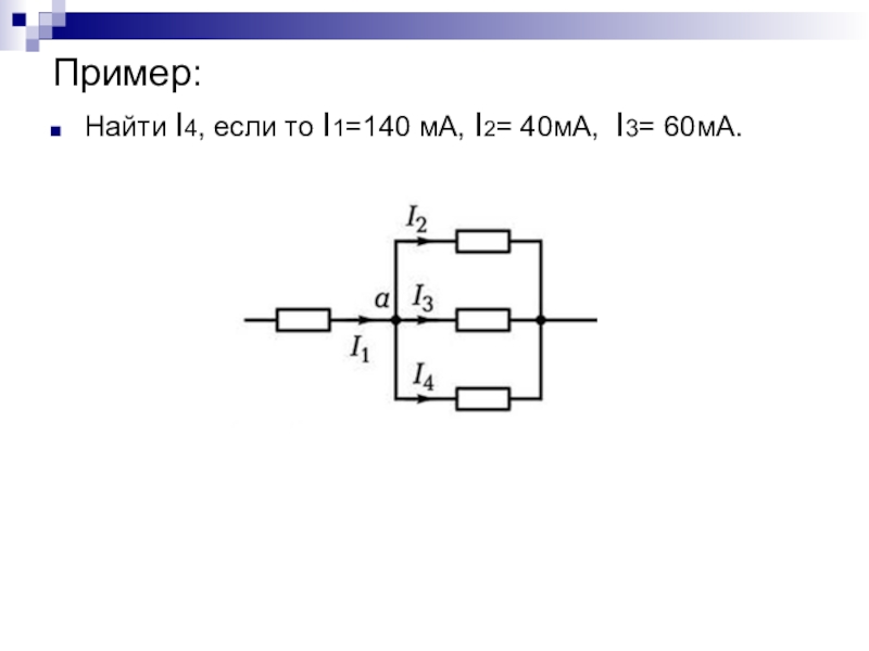 Найти I4, если то I1=140 мА, I2= 40мА, I3= 60мА.