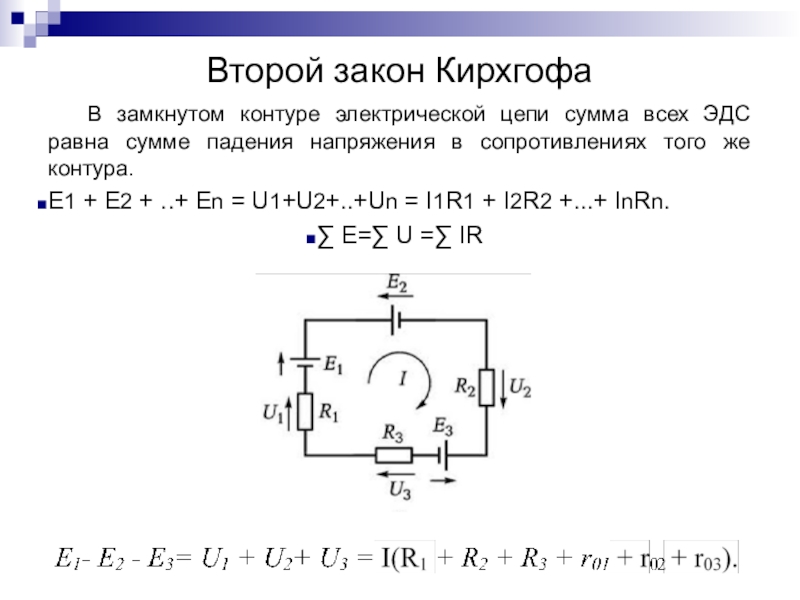 В замкнутом контуре электрической цепи сумма всех ЭДС