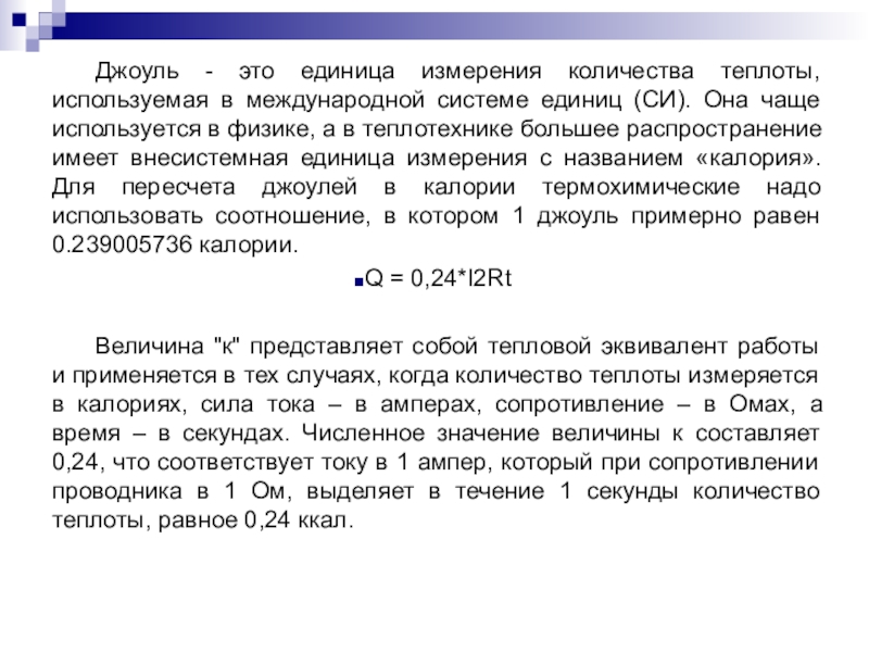 Слайд 14 Джоуль - это единица измерения количества теплоты, используемая в международной системе