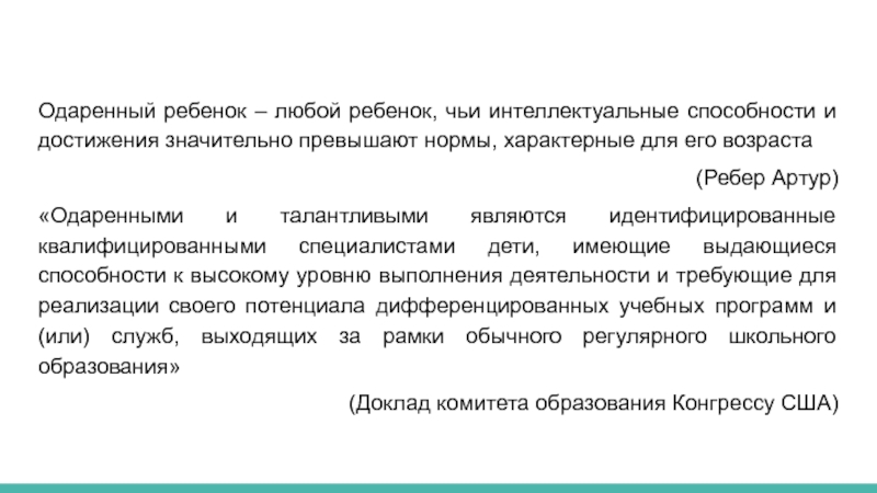 Слайд 4Одаренный ребенок – любой ребенок, чьи интеллектуальные способности и достижения значительно