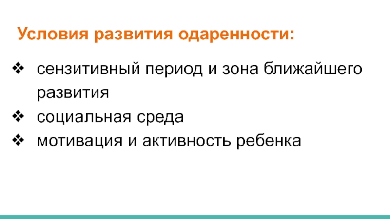 Слайд 9Условия развития одаренности: