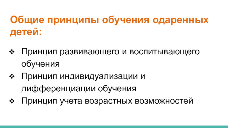 Слайд 13Общие принципы обучения одаренных детей: