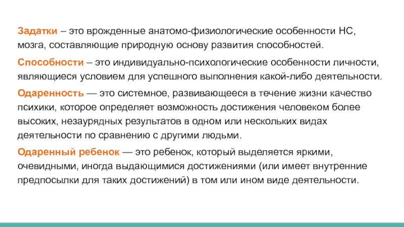 Слайд 5Задатки – это врожденные анатомо-физиологические особенности НС, мозга, составляющие природную основу