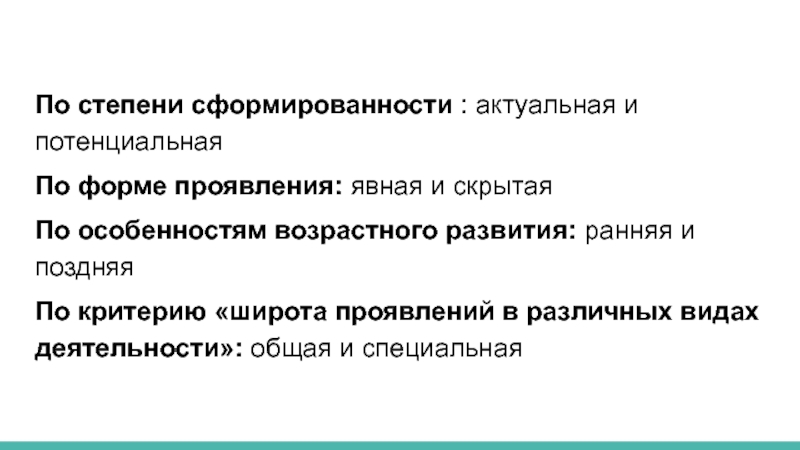 Слайд 7Виды одаренности: