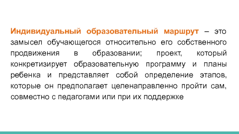 Слайд 15Индивидуальный образовательный маршрут – это замысел обучающегося относительно его собственного продвижения