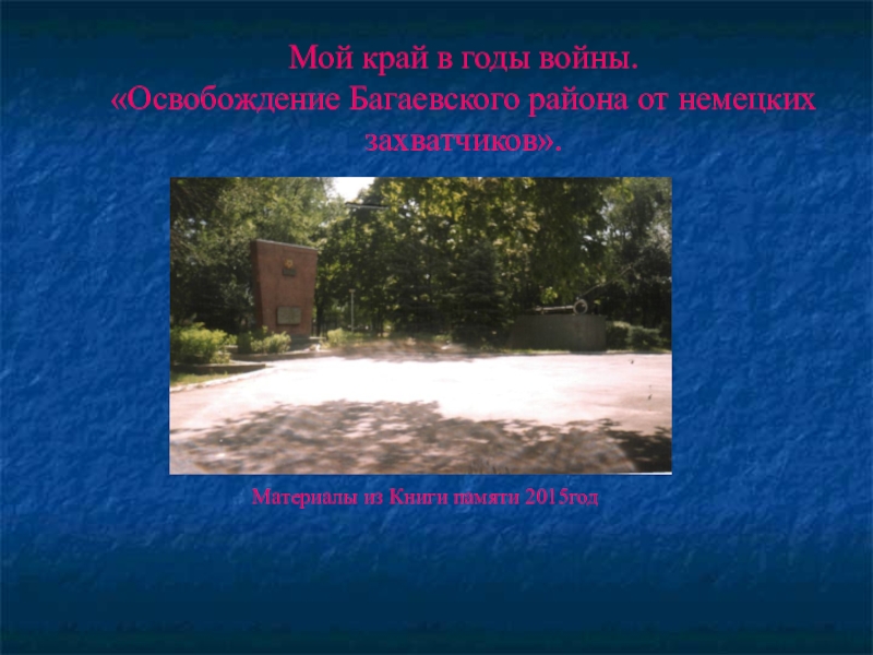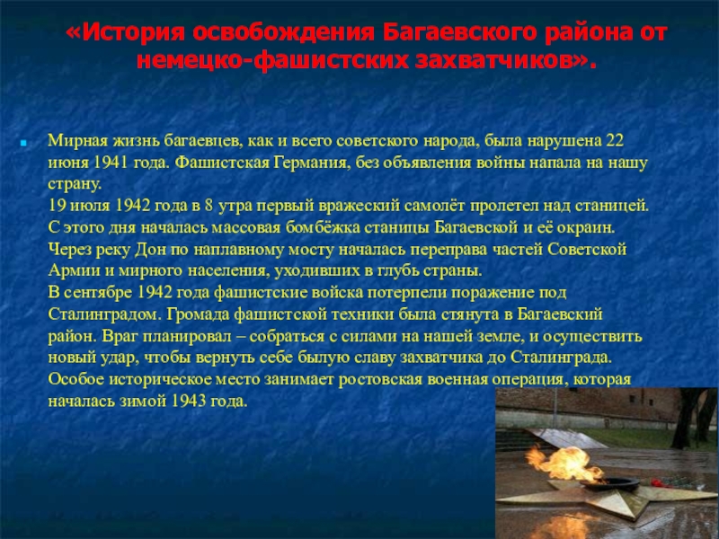 Слайд 2«История освобождения Багаевского района от немецко-фашистских захватчиков».