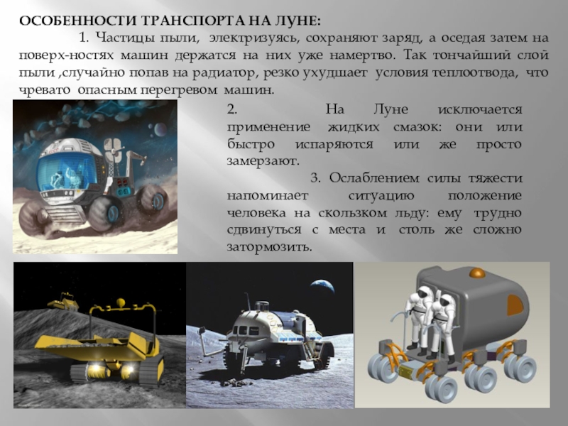 2. На Луне исключается применение жидких смазок: они или быстро испаряются или же просто замерзают.
