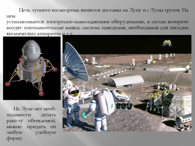 На Луне нет необ-ходимости делать раке-ту обтекаемой, можно придать ей любую удобную форму.