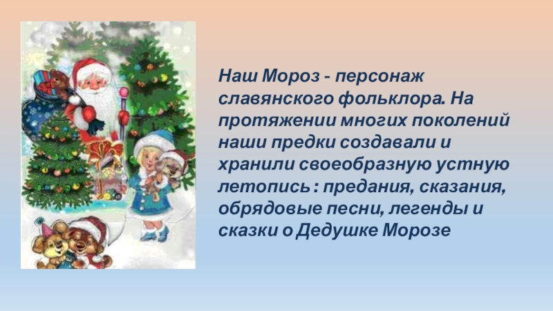 Слайд 9Наш Мороз - персонаж славянского фольклора. На протяжении многих поколений наши