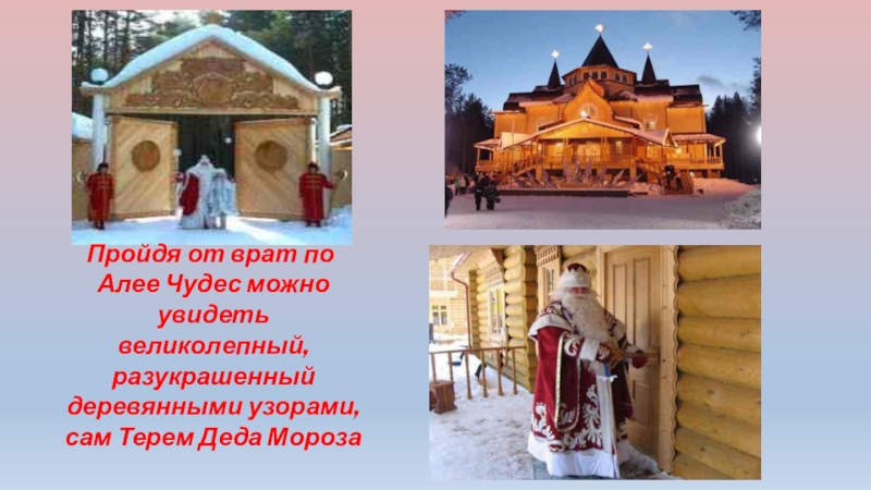 Слайд 14 Пройдя от врат по Алее Чудес можно увидеть великолепный, разукрашенный деревянными