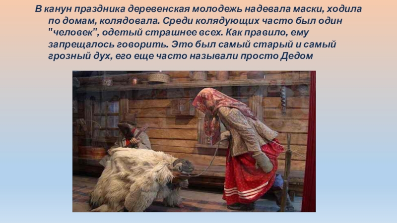 Слайд 5В канун праздника деревенская молодежь надевала маски, ходила по домам, колядовала.