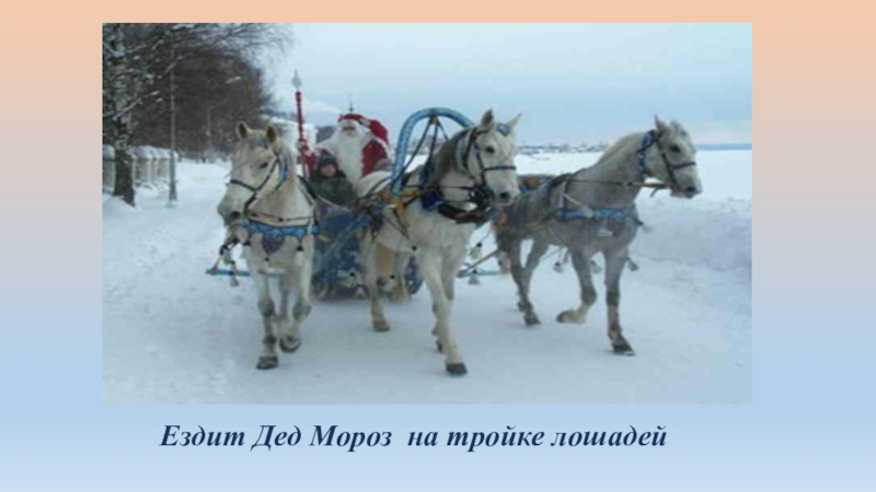 Слайд 11Ездит Дед Мороз на тройке лошадей