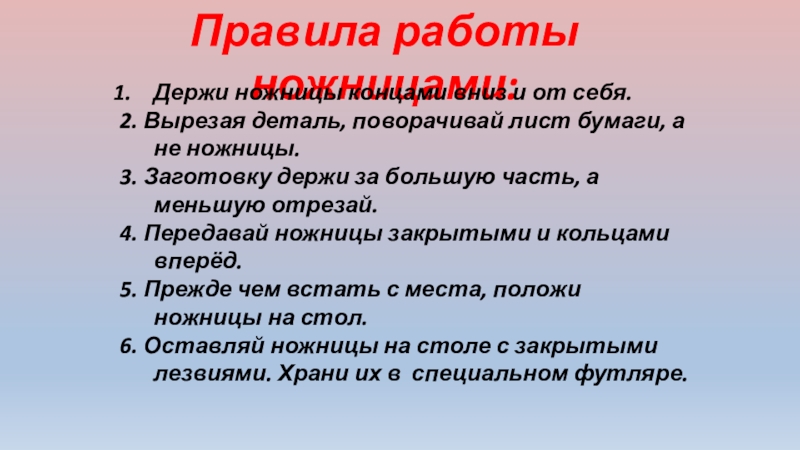 6. Оставляй ножницы на столе с закрытыми лезвиями. Храни их в специальном футляре.