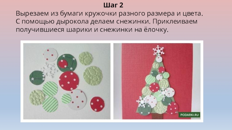 Приклеиваем получившиеся шарики и снежинки на ёлочку.