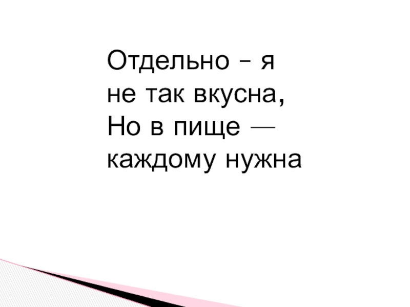Слайд 6Отдельно – я не так вкусна, Но в пище — каждому нужна