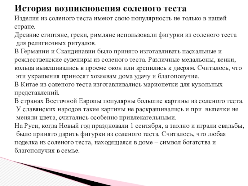История возникновения соленого тестаИзделия из соленого теста имеют свою популярность не только в нашей стране.Древние египтяне, греки,