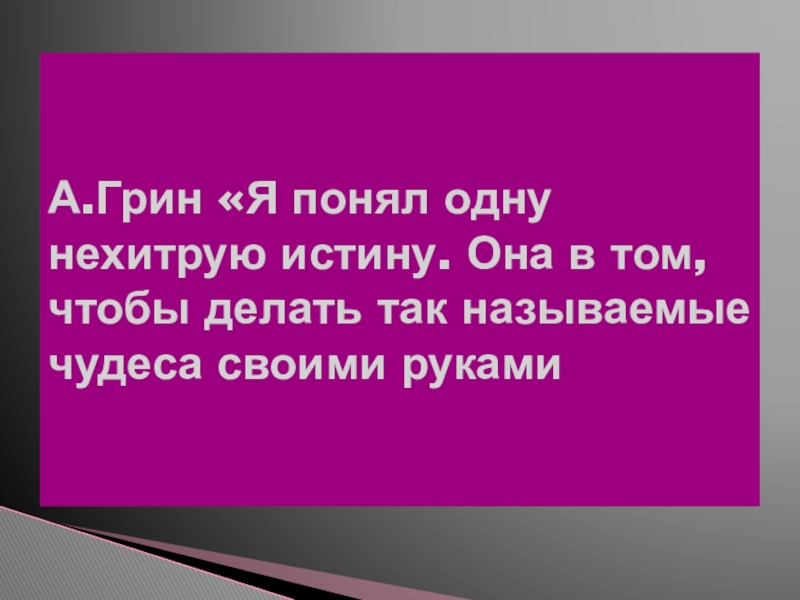 А.Грин «Я понял одну нехитрую истину. Она в том, чтобы делать так называемые чудеса своими руками
