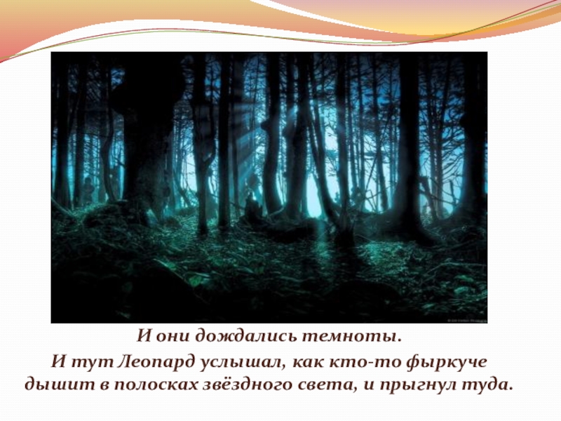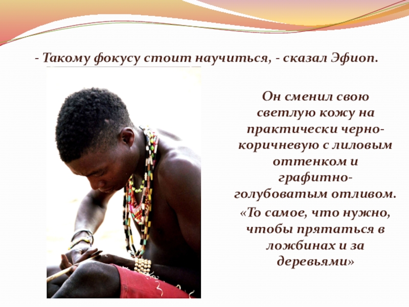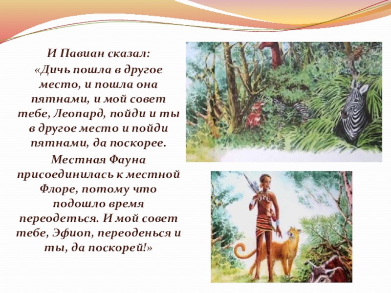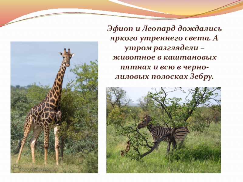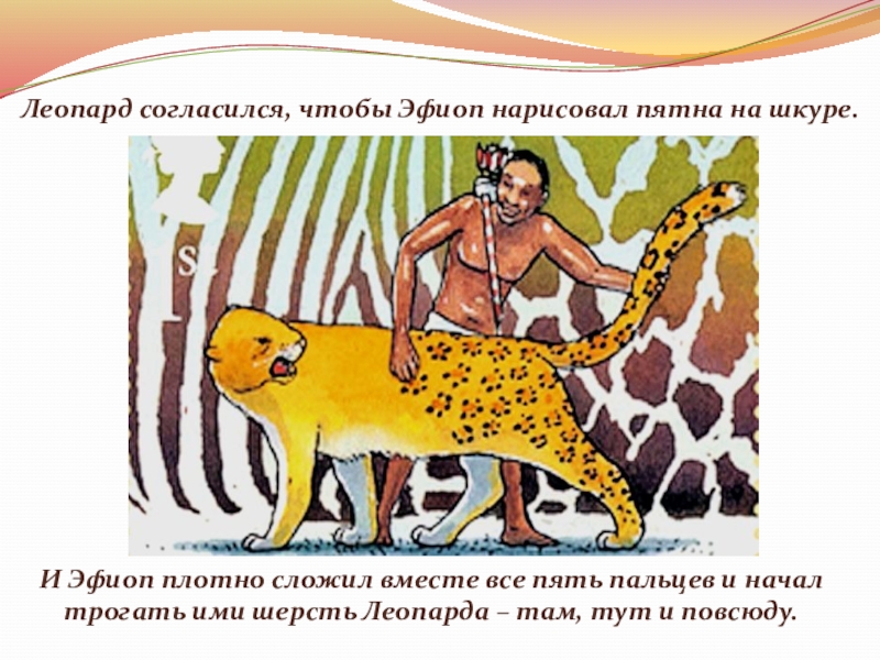Слайд 20Эфиоп и Леопард дождались яркого утреннего света. А утром разглядели –
