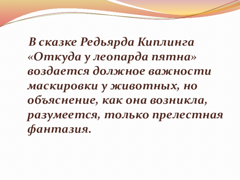 Слайд 2 В сказке Редьярда Киплинга «Откуда у леопарда пятна» воздается