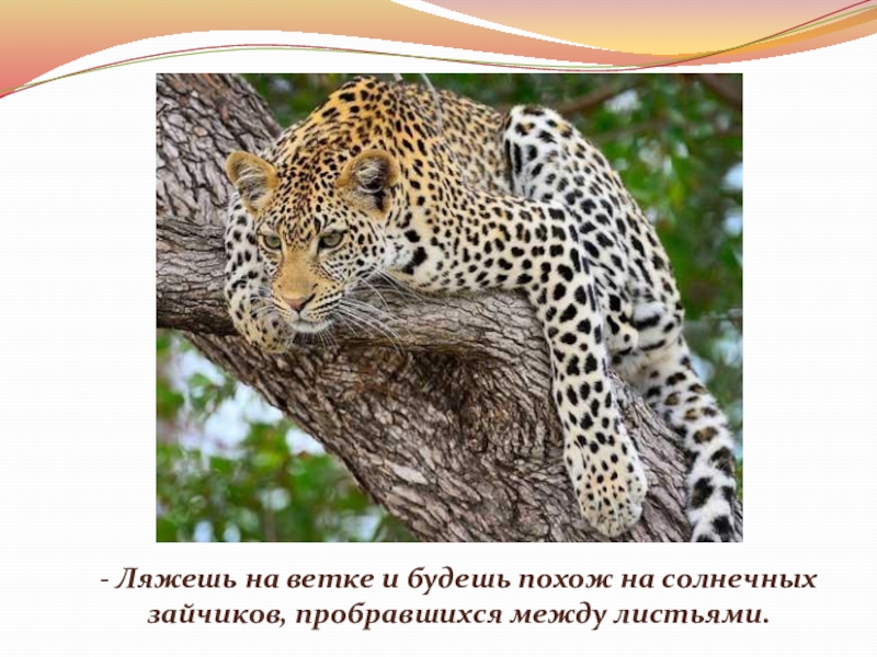 Слайд 26- Ляжешь на ветке и будешь похож на солнечных зайчиков, пробравшихся