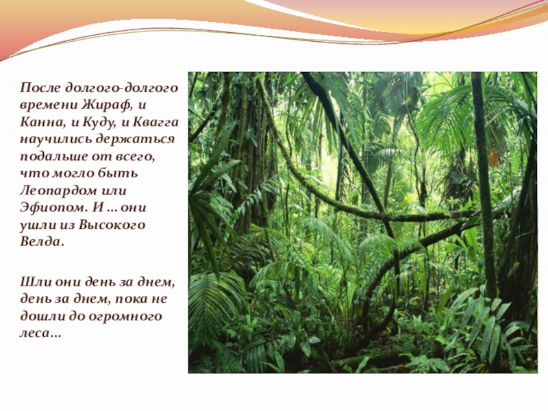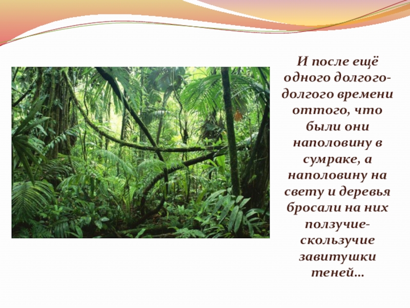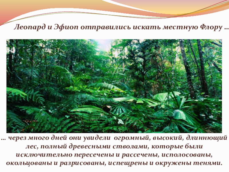Слайд 18… через много дней они увидели огромный, высокий, длиннющий лес, полный