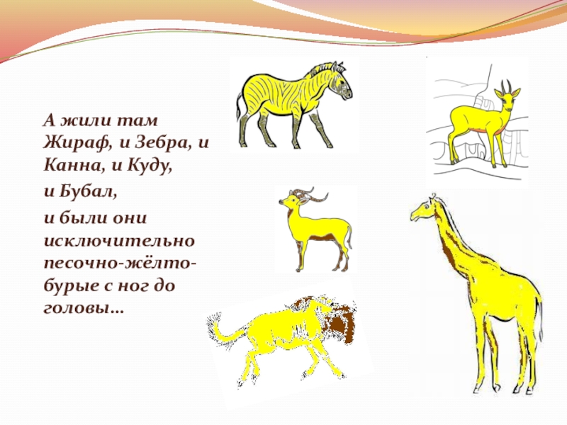 Слайд 4А жили там Жираф, и Зебра, и Канна, и Куду,