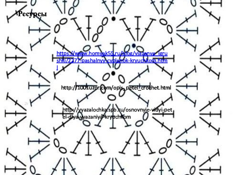 крючок ввести в петлю цепочки или нижнего ряда и вытянуть новую петлю, захватить нить и провязать 2 петли на крючке в один прием.