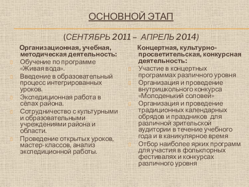 (СЕНТЯБРЬ 2011 – апрель 2014)