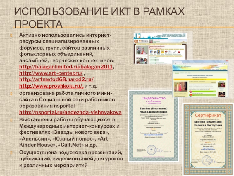 организована работа личного мини-сайта в Социальной сети работников образования nsportal http://nsportal.ru/nadezhda-vishnyakova