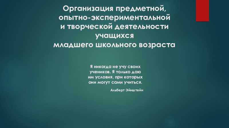 Организация предметной, опытно-экспериментальной и творческой деятельности учащихся младшего школьного возраста Я никогда не учу своих учеников. Я только даю им условия, при которых они могут сами учиться.