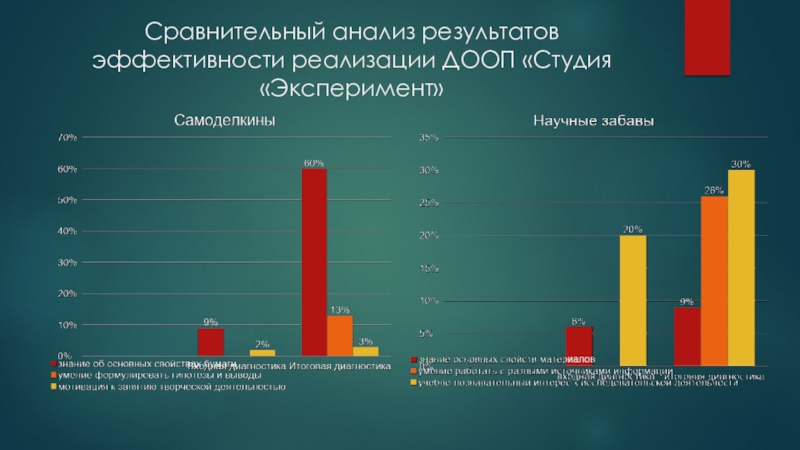 Слайд 11Сравнительный анализ результатов эффективности реализации ДООП «Студия «Эксперимент»