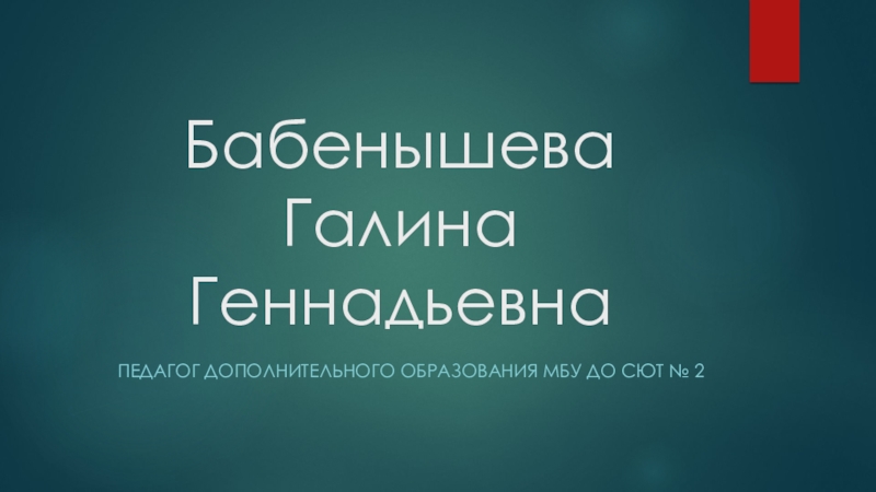 Бабенышева Галина ГеннадьевнаПедагог дополнительного образования МБУ ДО СЮТ № 2