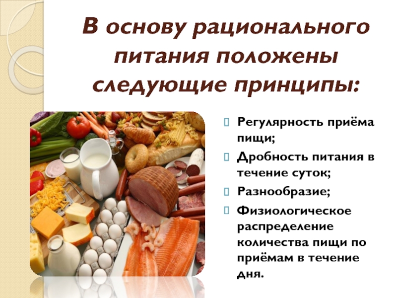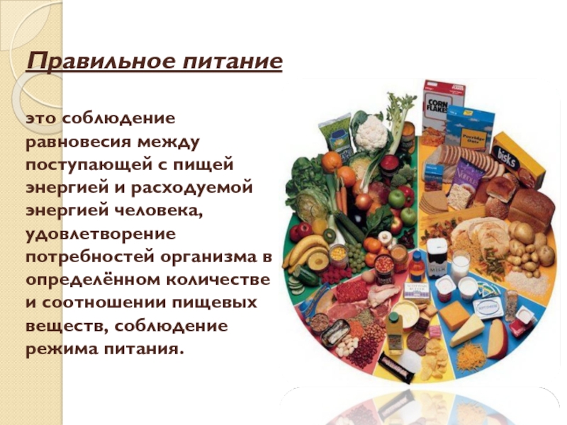 расходуемой энергией человека, удовлетворение потребностей организма в определённом количестве и соотношении пищевых веществ, соблюдение режима питания.