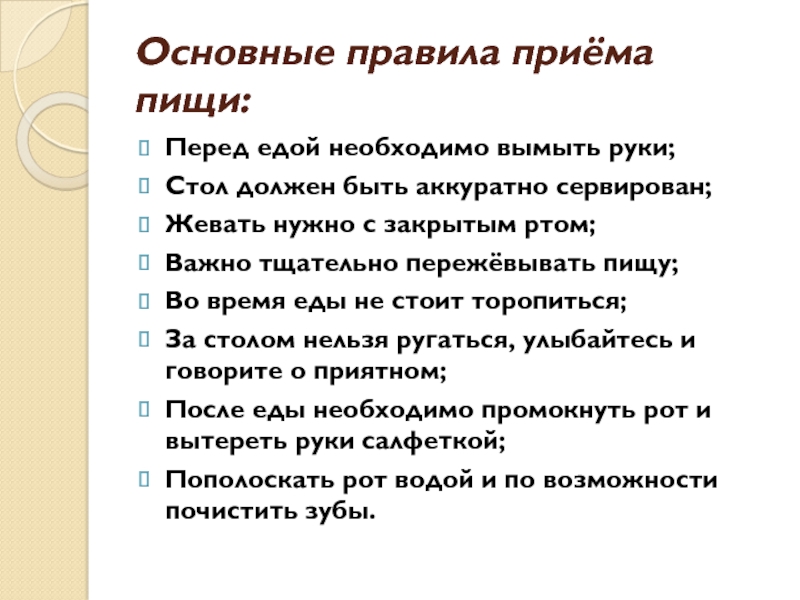 После еды необходимо промокнуть рот и вытереть руки салфеткой;