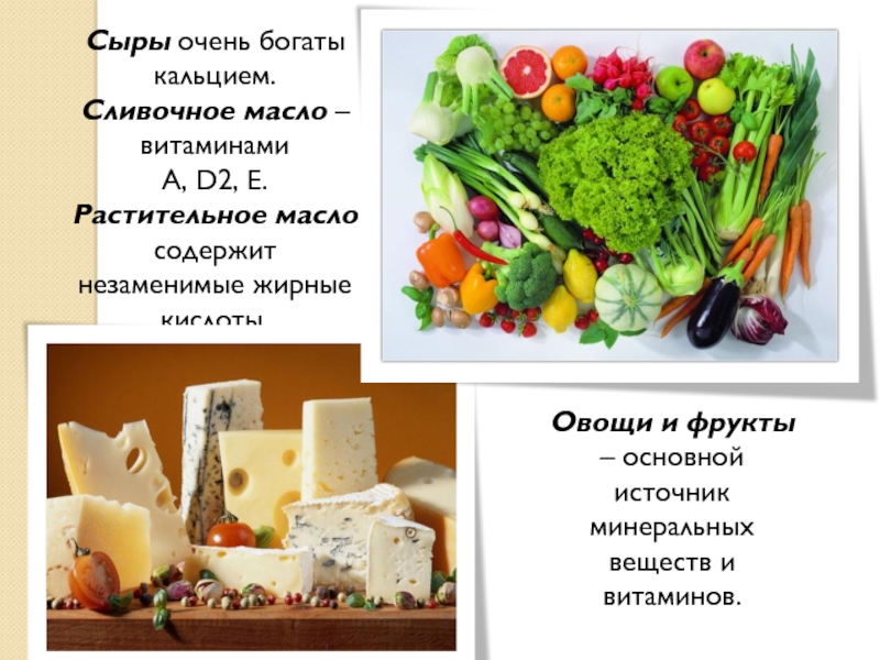 Овощи и фрукты – основной источник минеральных веществ и витаминов.