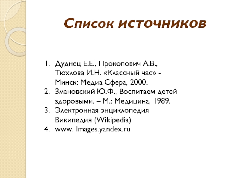 Змановский Ю.Ф., Воспитаем детей здоровыми. – М.: Медицина, 1989.