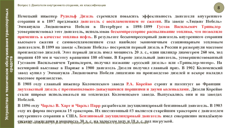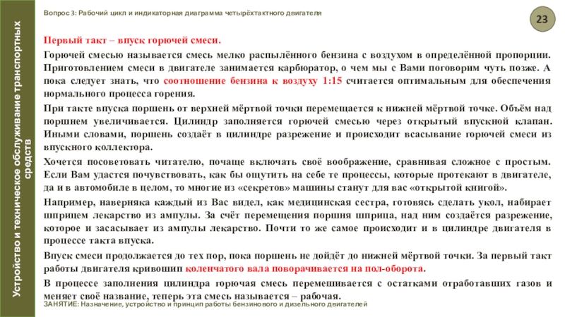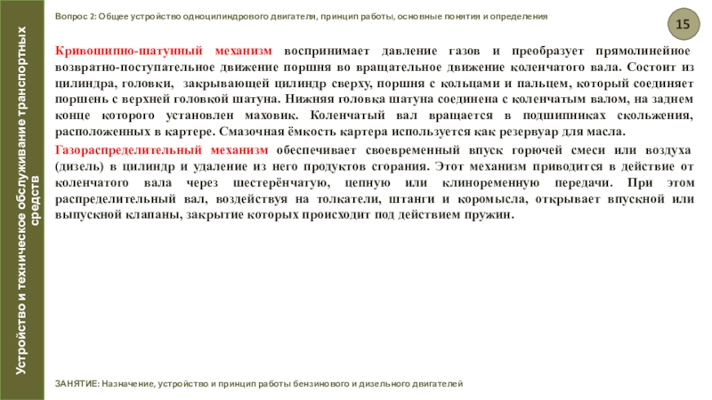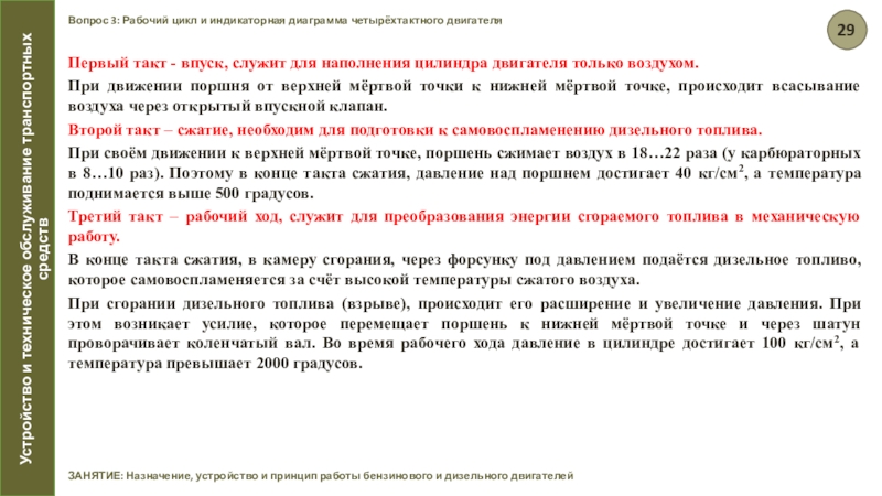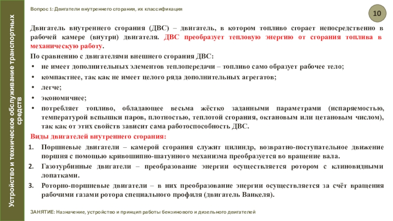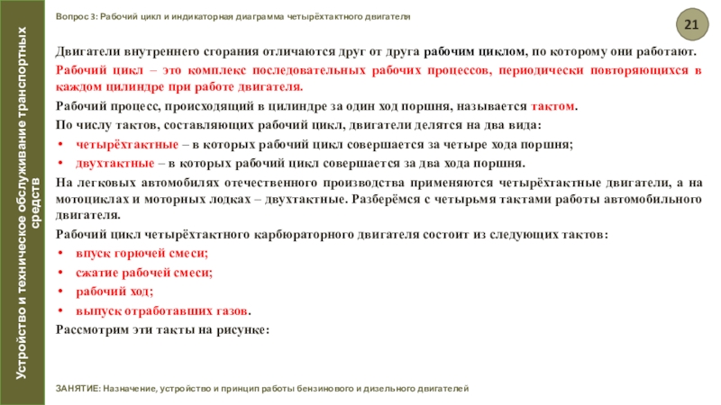 ЗАНЯТИЕ: Назначение, устройство и принцип работы бензинового и дизельного двигателей