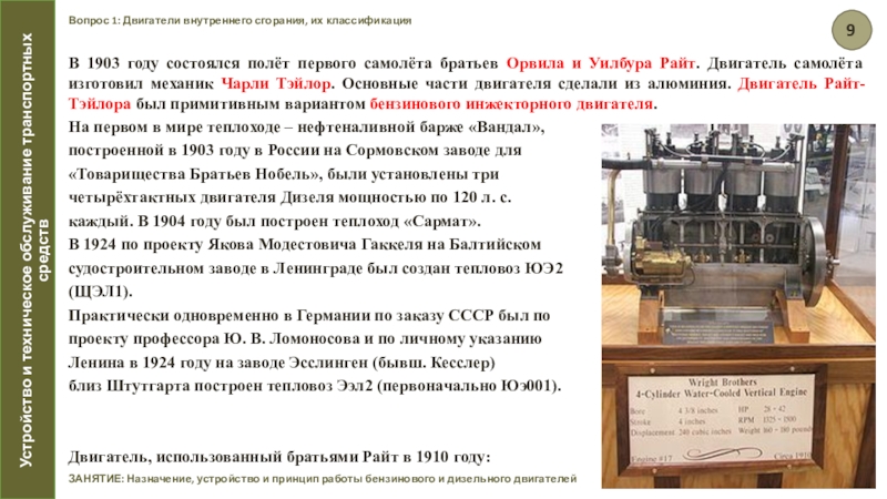 Двигатель, использованный братьями Райт в 1910 году: