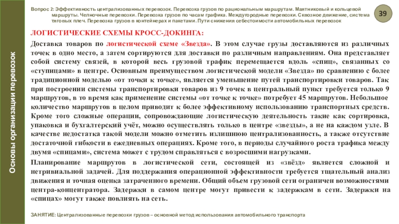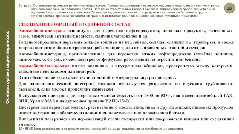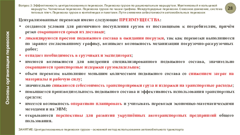 ЗАНЯТИЕ: Централизованные перевозки грузов – основной метод использования автомобильного транспорта