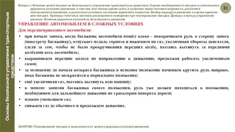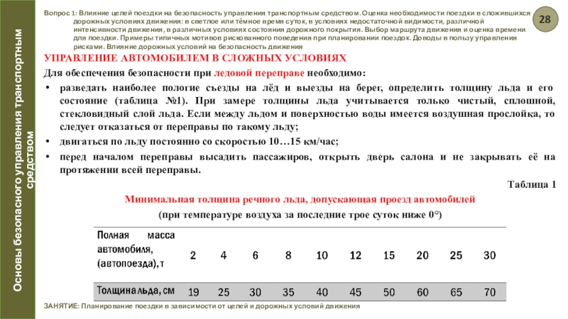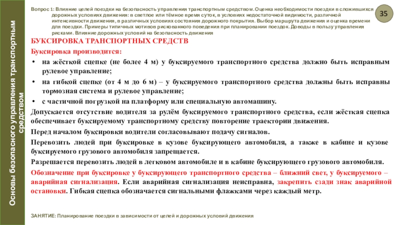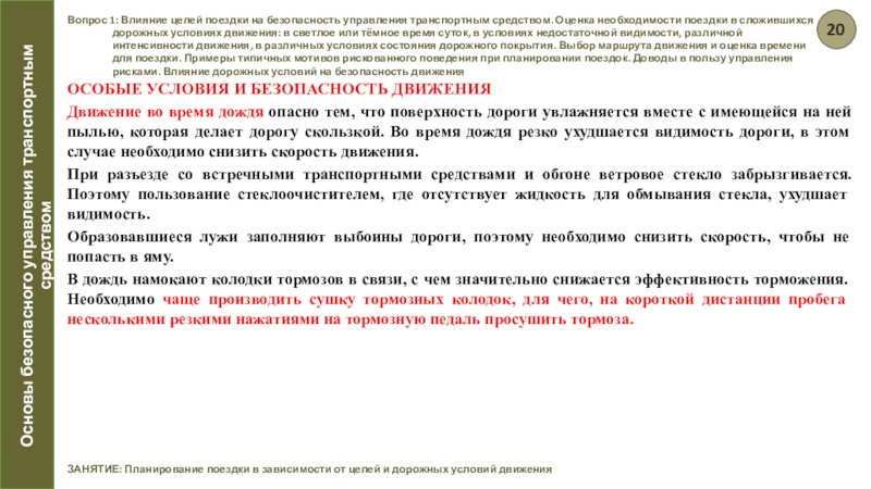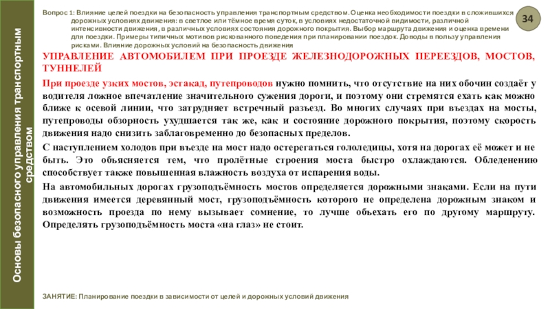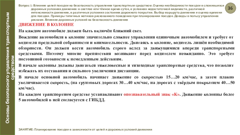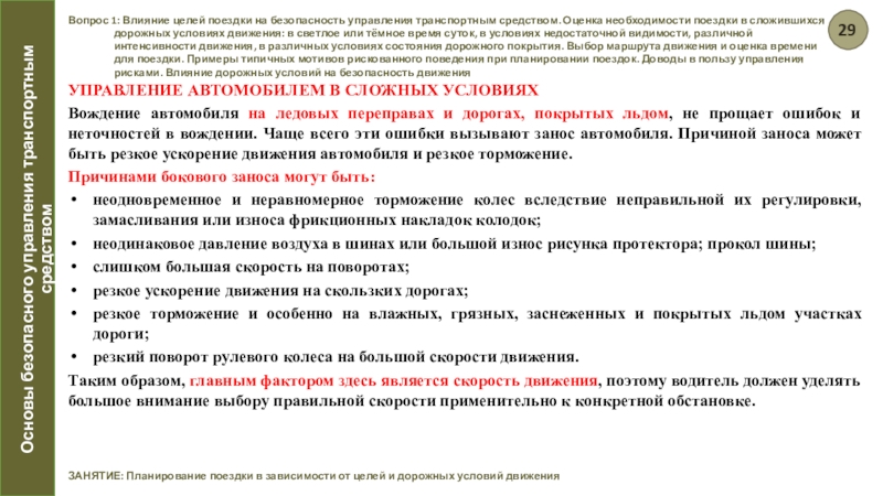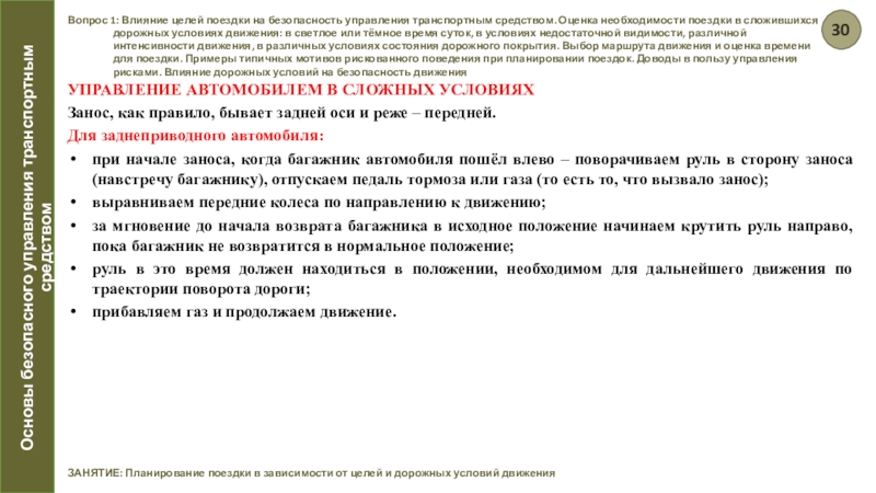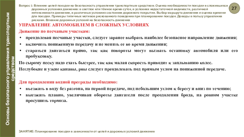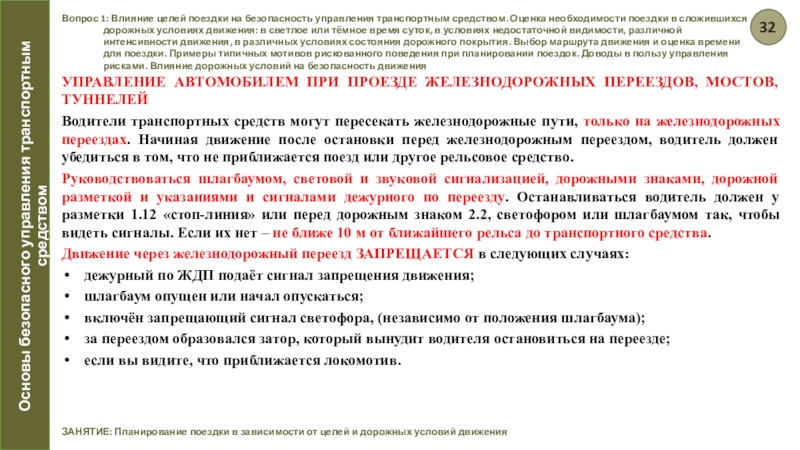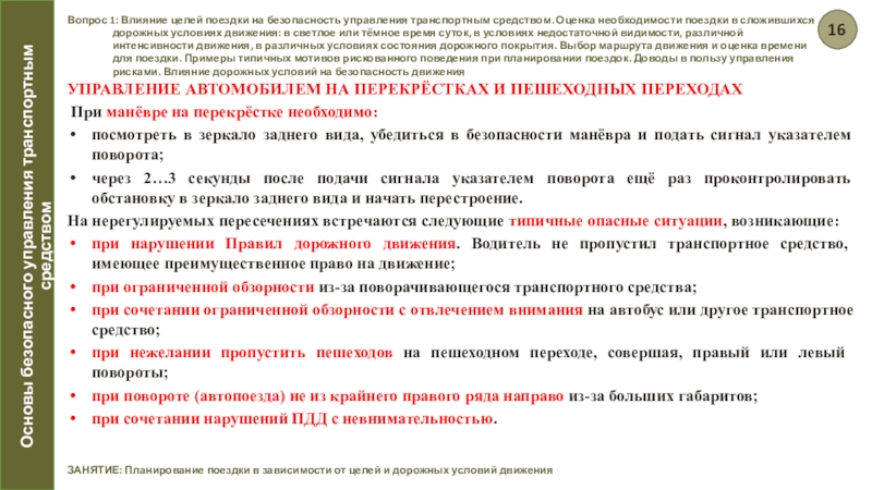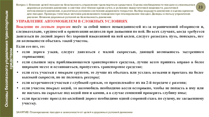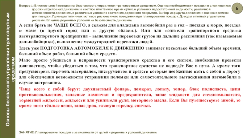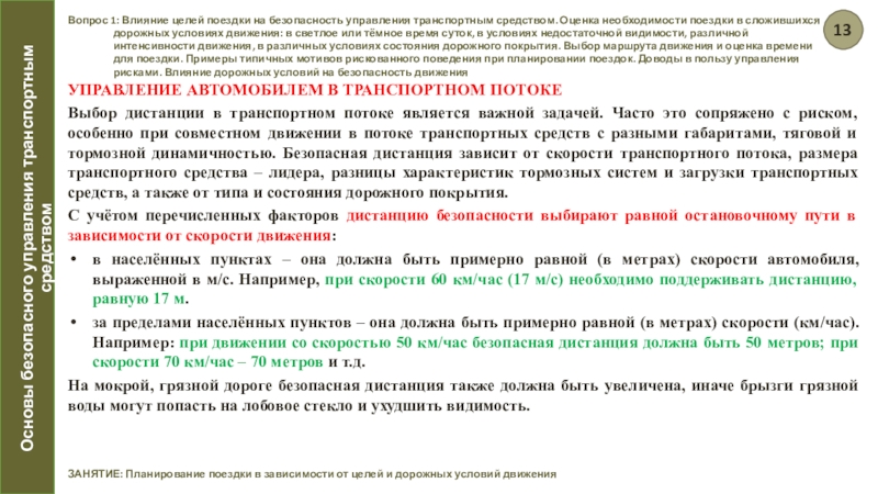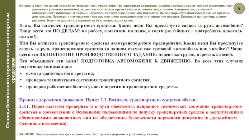 ЗАНЯТИЕ: Планирование поездки в зависимости от целей и дорожных условий движения