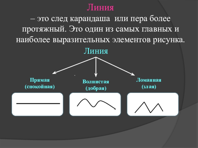 Волнистая, ломанная, прямая, вертикальная т.д.