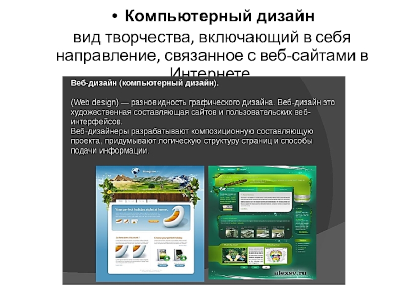 Компьютерный дизайнвид творчества, включающий в себя направление, связанное с веб-сайтами в Интернете.