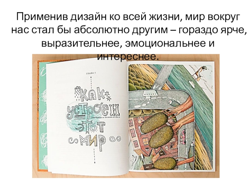 Слайд 4Применив дизайн ко всей жизни, мир вокруг нас стал бы абсолютно