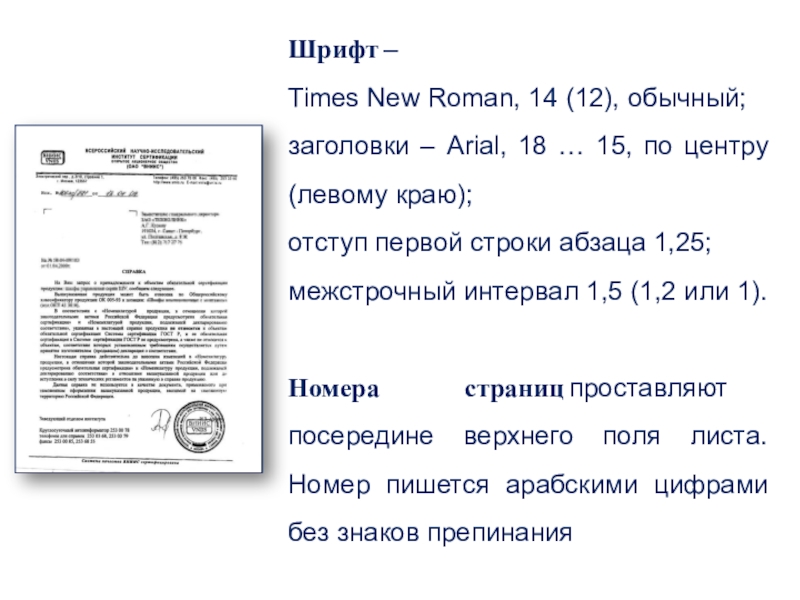 Номера страниц проставляют посередине верхнего поля листа. Номер пишется арабскими цифрами без знаков препинания