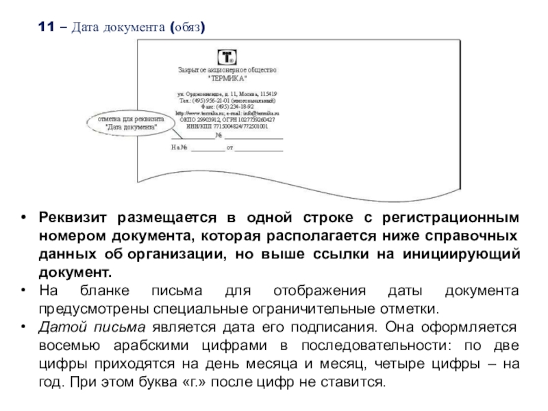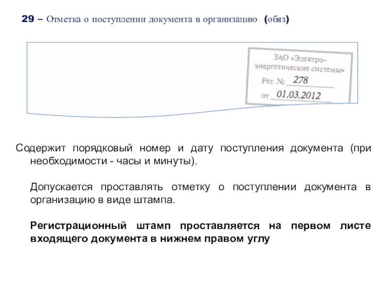 Слайд 5229 – Отметка о поступлении документа в организацию (обяз)