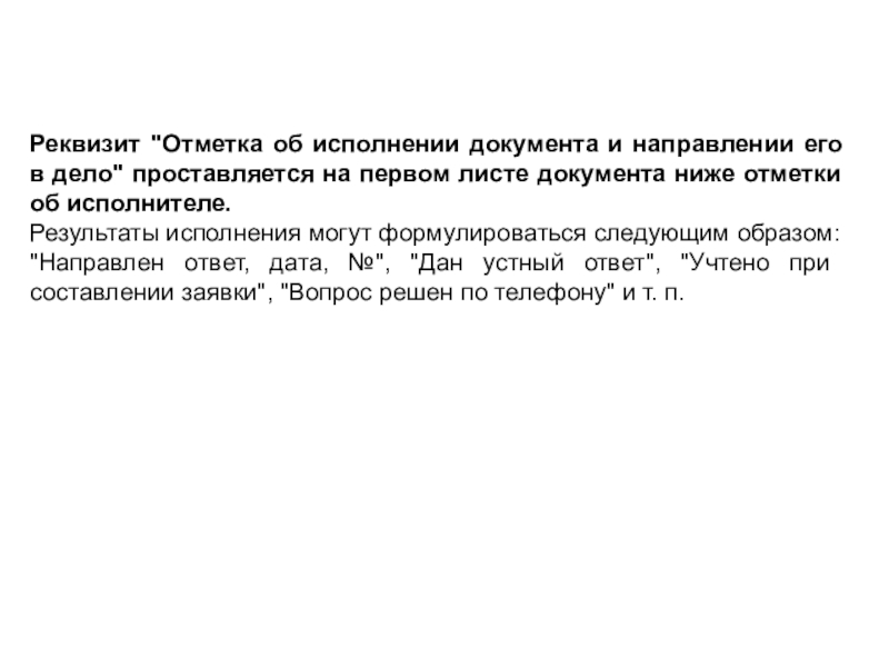 Слайд 51Реквизит "Отметка об исполнении документа и направлении его в дело" проставляется
