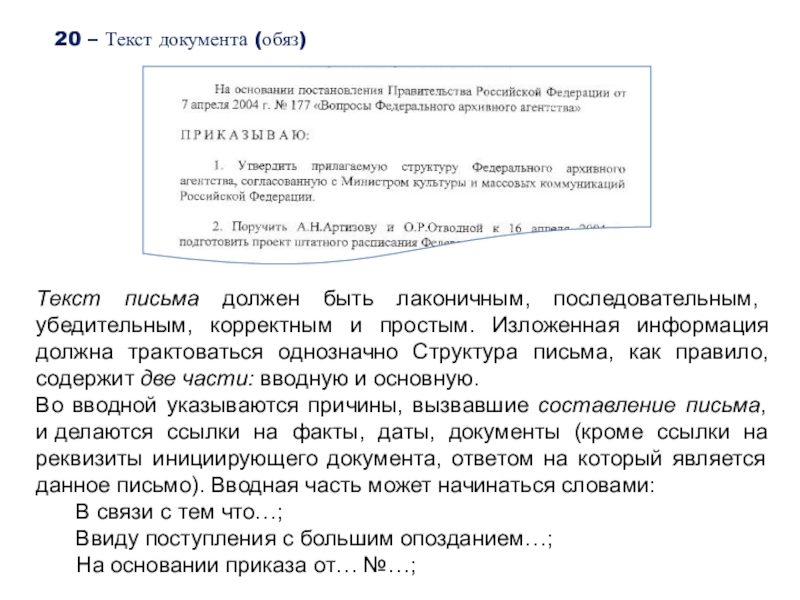 корректным и простым. Изложенная информация должна трактоваться однозначно Структура письма, как правило, содержит две части: вводную и основную.